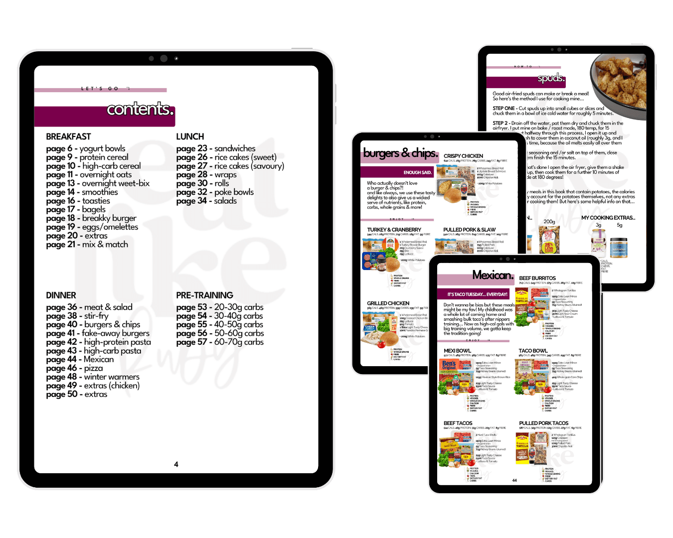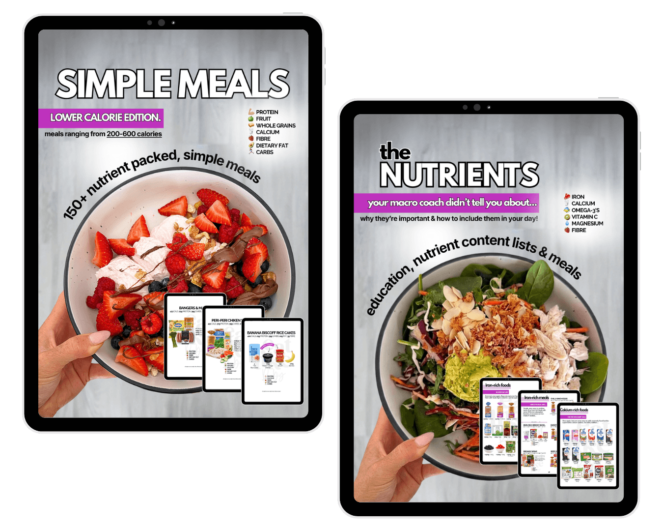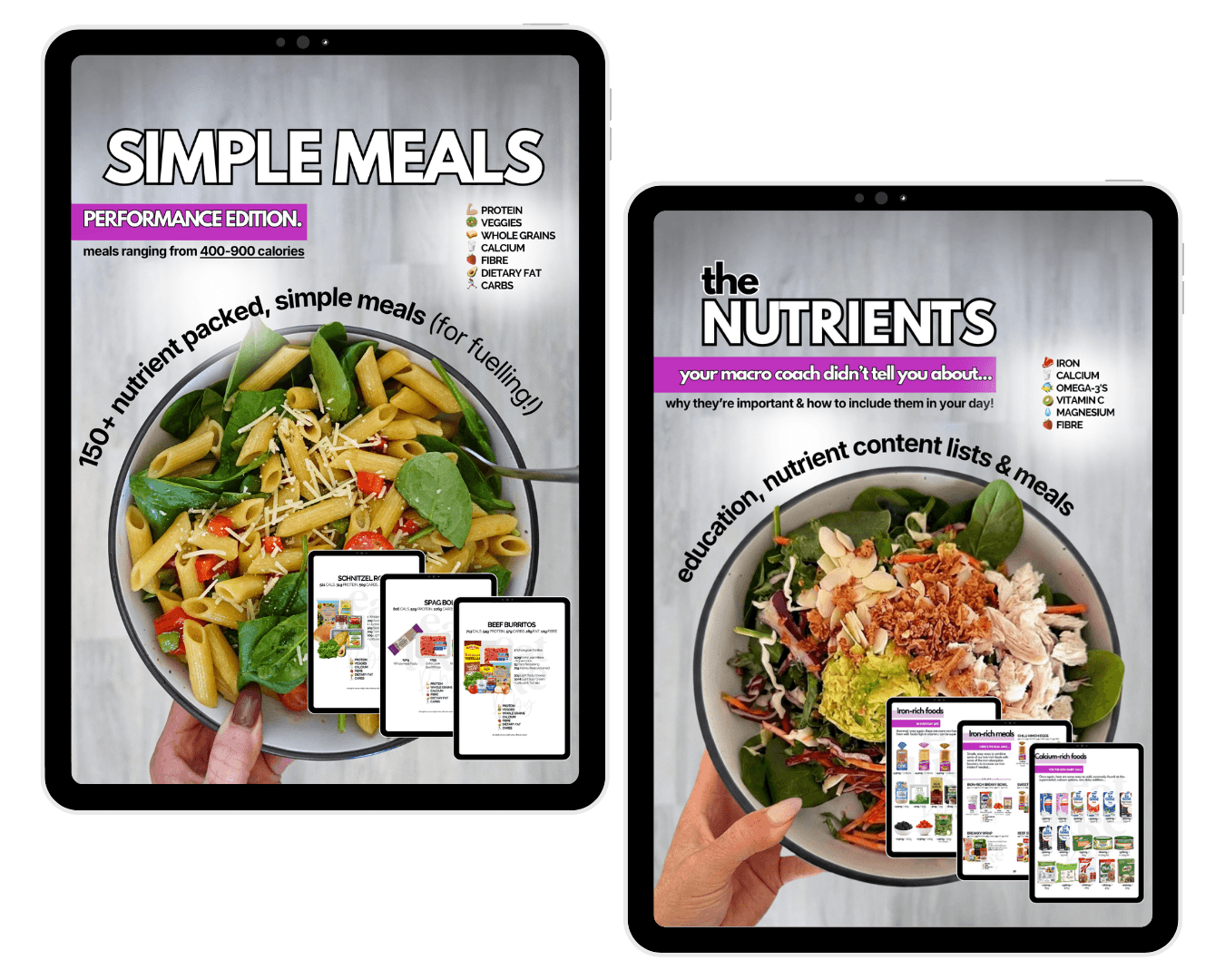 The meals in both of these are very similar, but some of the ingredients, add-ons & portions have been adjusted to hit higher or lower calories. Perfect for the gals who rotate between different nutrition focuses like fat loss, muscle gain and/or performance goals ๐๐ฝ